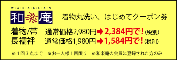 着物丸洗い「はじめてクーポン券」をご利用の方は